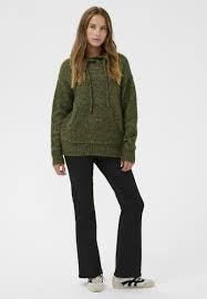 Chunky knit hoodie with a roomy silhouette, adjustable drawstring hood, kangaroo pocket and ribbed cuffs and hem. Textured finish creates effortless style for laid-back looks.